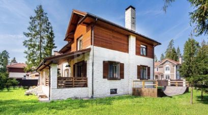 Дом 500 кв метров, построен из кирпича. Участок 18 соток украшен ланшафтным дизайном. В этом доме много пространства и света, здесь высокие потолки, светлые оттенки интерьера и дизайнерская итальянская мебель. Все помещения используются для комфортного проживания и отдыха небольшой семьи.