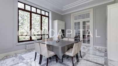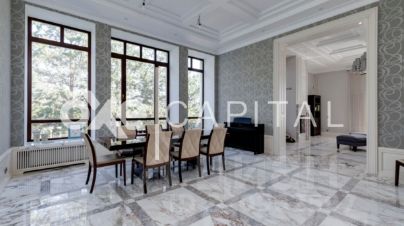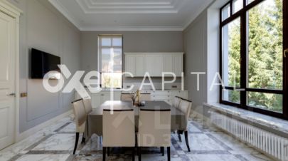 В идеально тихом месте меблированный дом площадью 985 кв.м на участке 30 соток. Мебель, люстры подобраны итальянских производителей: SMANIA, MOOD, SOFTHOUSE, MALERBA, CASTAGNA CUCINE. Первый этаж с комфортными теплыми полами и высотой потолка 4,5 м.