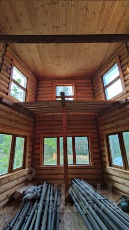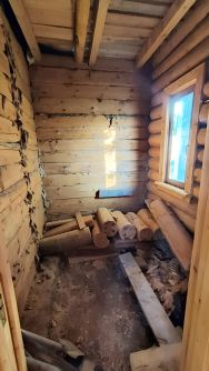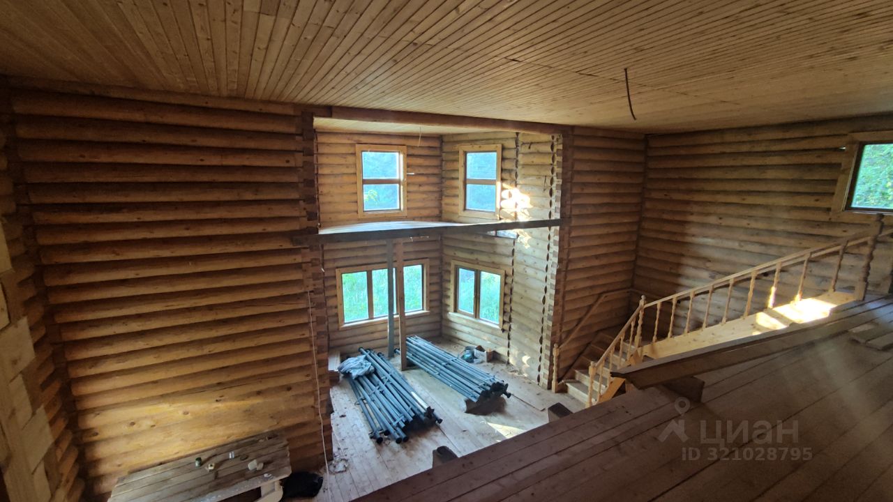 Двухэтажный бревенчатый дом. По проекту 4 комнаты, второй свет. Сам дом стоит на ленточном фундаменте со швеллерами, залит фундамент под камин.