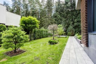 Шикарный лесной участок с вековыми соснами и елями, с ландшафтным дизайном: туи, высеян газон, установлены декоративные элементы, освещение, дорожки, территория благоустроена — естественный лесной ландшафт. Зона патио с костром и устройством ливневых стоков. Дополнительные места для парковки на 2 машины.