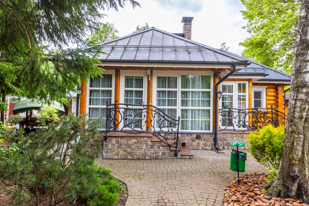 5. Баня с двумя помещениями: 1. Гостевая комната с раскладным диваном с ортопедическим матрасом, мини кухня и телевизор; веранда для отдыха с массажным столом и раскладным диваном;