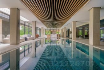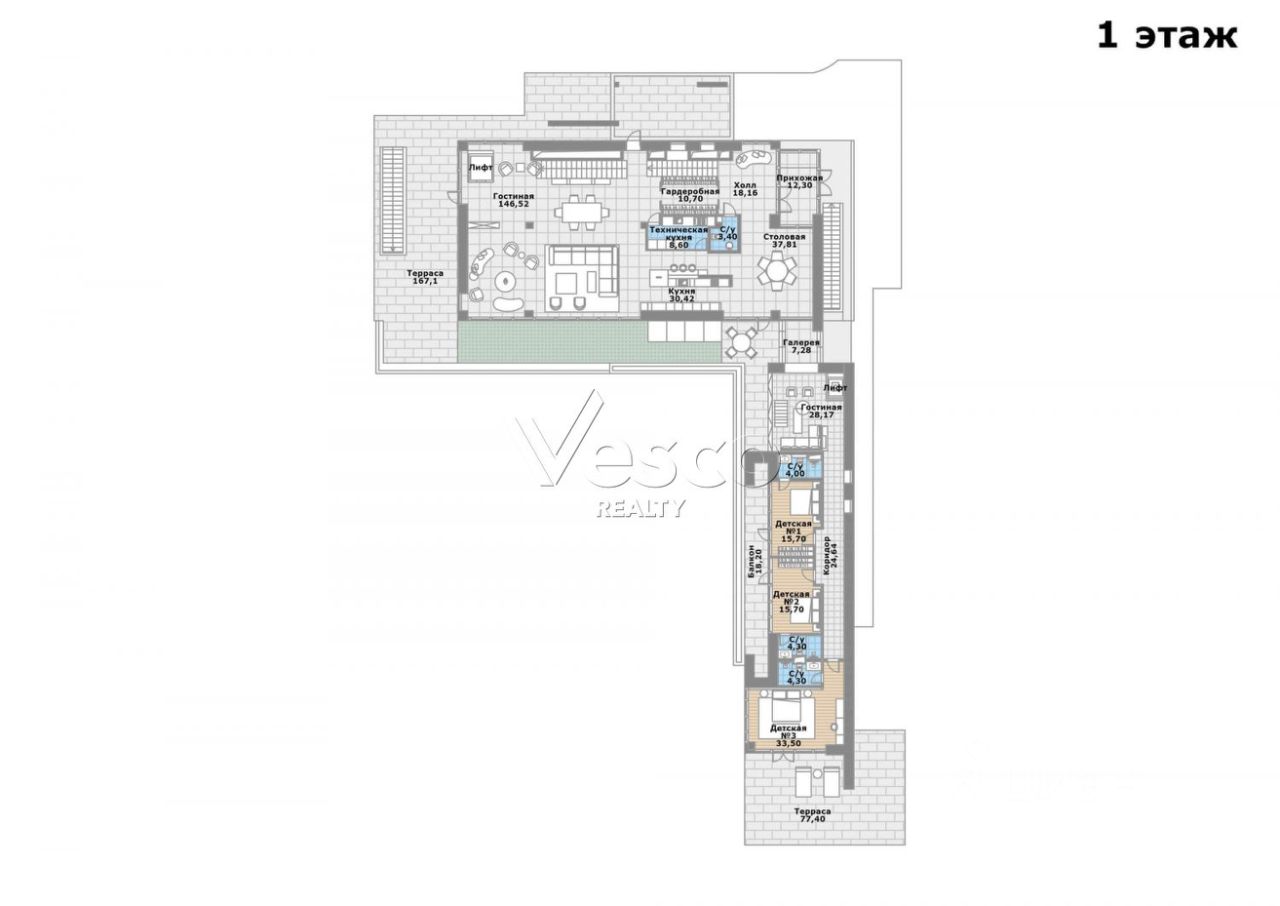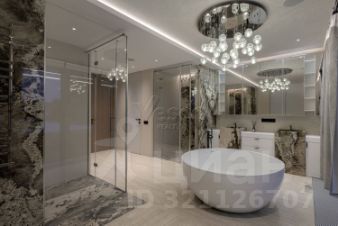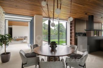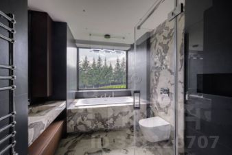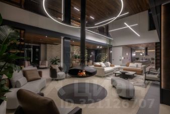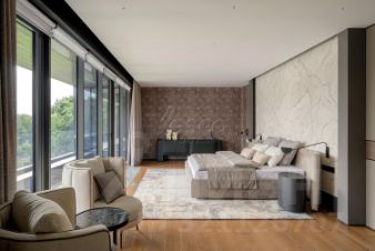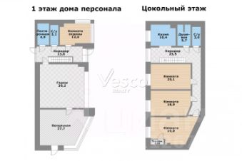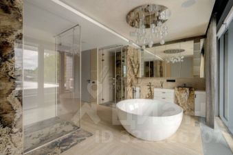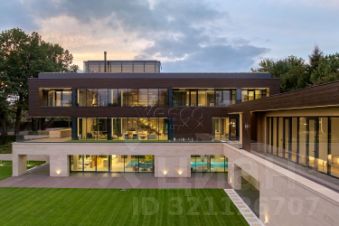 Лот 102904. Эксклюзив Vesco Realty. Коттеджный поселок "Рублевские горки" Резиденция площадью 2150 кв.м на участке 62 сотки расположена в 24 км от МКАД по Рублево-Успенскому шоссе в КП Рублевские горки. Удобный выезд на платную трассу. В доме: 5 спален, 2 гостиные, 3 кухни, 2 столовые зоны, кабинет с панорамным видом на 4 стороны, спа-комплекс с бассейном, сауной и хаммамом, винный погреб, гараж на 4 м/м, постирочная, балконы и террасы (442 кв.м). Фишки: лифт обычный и продуктовый, бассейн 15 метров (глубина от 1,2 до 2,2 метров), модный камин с поворотным механизмом на 360 градусов, второй свет в гостиной 7,6 м, снегогенератор. Особенности проекта: продуманная логистика, 2 автономных заезда на участок (на каждом - свой пункт охраны), уникальный рельеф, 2 участка для спорта и отдыха, 5 уровней в доме, котельная - в отдельном строении, собственная калитка в строящийся парк, вековые дубы на уличной террасе. На участке также расположен двухэтажный дом персонала площадью 214 кв.м. УЧАСТОК Дом стоит на рельефе, поэтому участок 62 сотки разделен на две части, примерно равные по площади - верхний уровень со входом на 1 этаж и нижний на -1 этаже с прямым доступом в спа-комплекс. С нижнего участка есть выход непосредственно в строящийся парк, который расположен на уровень ниже и не нарушает приватность жителей дома. На благоустроенной территории будут детские площадки, зоны отдыха, ландшафтное освещение, амфитеатр, терраса для занятий йогой, прогулочная тропа с деревянным настилом длиной более 1 км в одну сторону и даже искусственное озеро с пляжем. На верхнем уровне растут шикарные вековые дубы с пышными кронами. По периметру участков высажены туи и ели, оборудована зона барбекю и зона отдыха, система автополива, альпийская горка, подсветка дорожек. ПЛАНИРОВКИ -2 этаж: Винный погреб (25,2), лестница (25,5), с/у для персонала (5,6), постирочная (20,4). Технические помещения: электрощитовая (12,6), вент. камера (24,4),тех.помещение лифта (4,3), тех.помещение бассейна (13,1 + 38,4), коридор (90,2), подсобное помещение (1 + 6,2), лестницы (16,9 + 6). -1 этаж: Спа-комплекс: бассейн (188,9), сауна (6,6), хаммам (6,7), душевые (2,5 + 2,8), с/у (2,4), лестница (12,9), лифт, зона отдыха (73,4), терраса (159,3). Технические помещения: гараж (80,9), навес (33,9), комната охраны (18) с с/у (2,6), тепловой пункт (10,3). Помещение шеф-повара: техническая кухня (16,7), кладовая для продуктов (3,6), комната отдыха (17,3) с с/у (3,7), холл (10,3). 1 этаж: Тамбур (12,3), холл (18,2), гардеробная (10,7), гостевой с/у (3,4), гостиная 1 (146,5), столовая (37,8), кухня парадная (30,4), техническая кухня (8,6), гостиная 2 (28,2+7,28), лифт, террасы (167,1). Детский блок: коридор (24,6), спальня 1 (15,7) с ванной (4), спальня 2 (15,7) с ванной (4,3) и балконом (18,2), спальня 3 (33,5) с ванной (4,3) и балконом (77,4). 2 этаж: Мастер-блок: спальня (35,9) с балконом (15,3), ванной (25,3) c двумя с/у (2,3 + 2,3) и гардеробной (41,2), холл (14,7). Спальня 2 (33,9) с балконом (6), ванной (8,3) и гардеробной (9,9). Лестничный холл с зоной отдыха (102,1), лифт. 3 этаж: Гостиная 3 (32), кабинет (17,7), с/у (3,2), лифт (6), терраса (300). Дом охраны (214,2 кв.м). Квартира персонала: 3 спальни (20,1 + 19,9 + 18,9), кухня (10,4), душевая (5,7), с/у (3,1), коридор (23,5). Комната охраны (12) с с/у (3,1). Технические помещения: котельная (27,7), постирочная (4,9), гараж (36,2), техническое помещение (1,2), коридор (13,6). ФАСАД Травертин, канадский кедр. Светопрозрачные конструкции и раздвижки Schco. Кровля эксплуатируемая, частично с озеленением. МАТЕРИАЛЫ И БРЕНДЫ В отделке используется дерево, кр