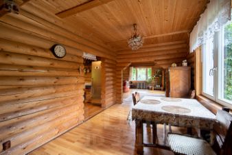 В отделке использовались только качественные дорогостоящие материалы. На окнах деревянные стеклопакеты с резными наличниками, дубовые межкомнатные двери. В спальнях для утепления пола использован северный мох, обладающий антисептическими свойствами. Установлены система теплый пол, фильтры многоступенчатой очистки воды. Редко где встретишь такое сочетание натуральных природных материалов с инновационными технологиями!