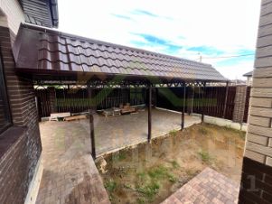 Участок 7 соток. Перед домом крытая площадка в брусчатке 50 м2 -на 4 машины. Вокруг дома выложена брусчатка.