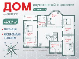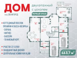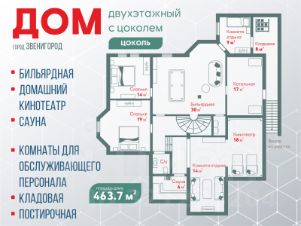 Дом кирпичный, двухэтажный + цокольный этаж (463, 7 м). Год постройки 2009.