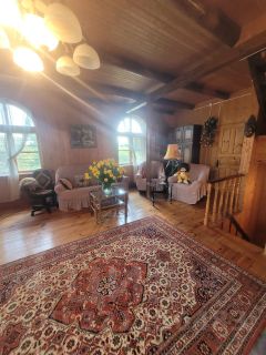 Внимание, уважаемые покупатели, поместилось меньше половины фото, дополнительно фото по запросу, дом и участок зарегистрированы, к дому ведёт хорошая грунтовая дорога, переходящая буквально через 800 метров в хорошую асфальтовую дорогу с остановкой общественного транспорта. Дом 3-этажный, площадью 220кв. М и баня 60кв. М расположены на участке для индивидуального жилищного строительства, площадью 15 соток. Дом является по выражению хозяйки ее местом силом с любовью строившийся для всей семьи, где мебель, в том числе резная и остальной интерьер подобраны в соответствии с дизайнерским проектом, но в связи с обоснованием в г. Москве и невозможности уделять время уходу и поддержанию, возникла необходимость продажи. Дом снабжается питьевой водой из колодца, глубиной 8 колец, отапливается печью и есть возможность присоединения газа, электричество центральное, 15кв. Т. Первый этаж дома выполнен из кирпича утеплен минералватой и обит сайдингом, второй и третий этаж выполнены из бревна и также утеплены и обиты сайдингом. Пространство дома позволяет почувствовать простор и воздух: потолки более 3 м высотой. За участком находится природоохранная зона: сначала небольшое поле, а за ним лес, что исключает застройку ща участком. У входа на участок стоит баня с парной, отапливаемой дровами, с просторным предбанником. Возможен хороший торг при серьёзных намерениях. Подробности по телефону, оперативный показ.