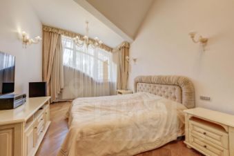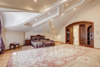 На втором этаже располагается мастер-спальня с вместительным гардеробом и большим санузлом. У спальни есть собственная терраса. Также из мастер-спальни можно попасть в роскошный кабинет с дровяным камином.