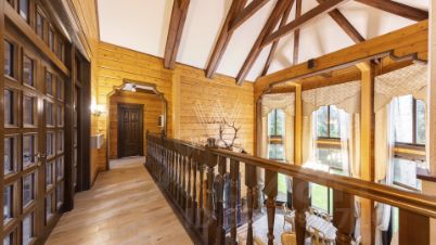 • 2-й уровень: холл, коридор с балюстрадой, , мастер-спальня с балконом, ванной и гардеробной, кабинет-библиотека, 2 спальни и 2 санузла.