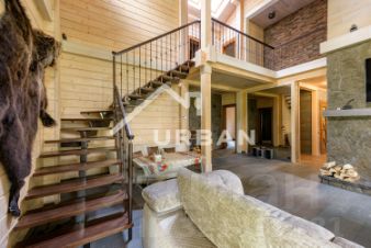 • 1 этаж: просторная гостиная с камином и панорамным остеклением (Aluplast), кухня с техникой SMEG и Samsung, сауна, джакузи с видом на лес, гостевая спальня, санузел, гардеробная, большая терраса с зоной BBQ.