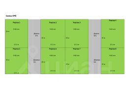 - возможно перераспределение на три, четыре, пять, шесть, восемь, двенадцать прямоугольных земельных участка (схемы).