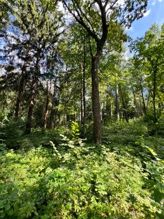 Участок площадью 74 сотки, расположен в окружении вековых сосен, имеет оптимальные размеры для строительства резиденции или двух больших домовладений.
