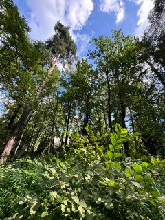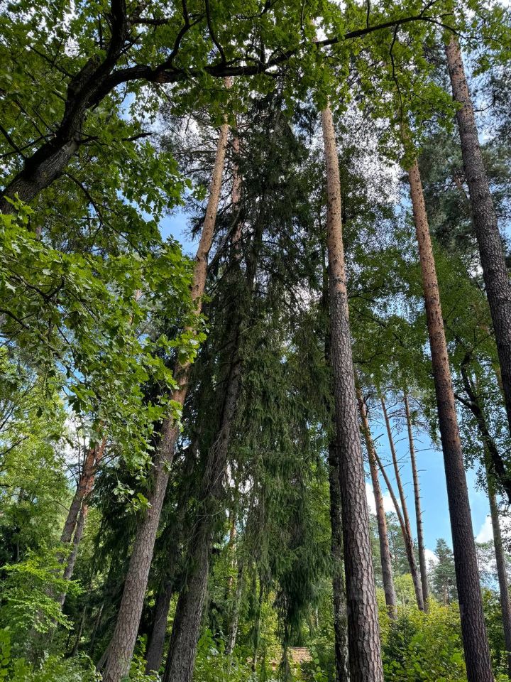 Участок площадью 74 сотки, расположен в окружении вековых сосен, имеет оптимальные размеры для строительства резиденции или двух больших домовладений.