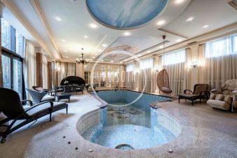 1-й этаж: прихожая с гардеробной, холл, каминный зал со вторым светом и выходом на веранду, гостиная-столовая, кухня, кабинет, с/у, СПА-комплекс: бассейн с зоной отдыха, сауна, с/у, тренажерный зал.
