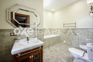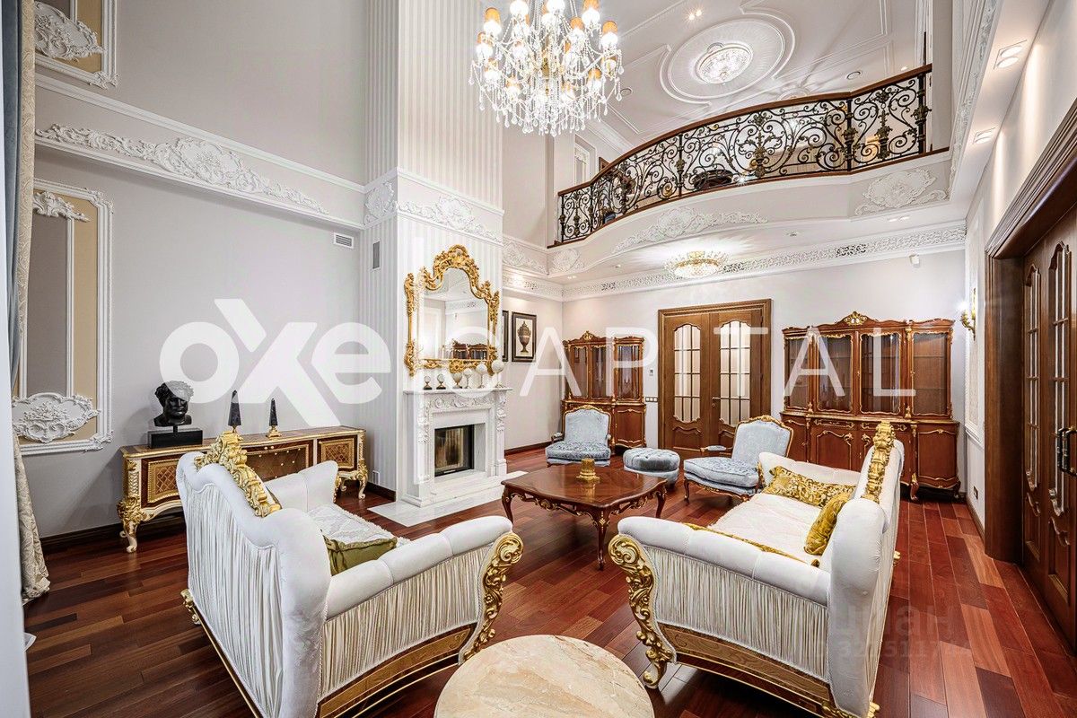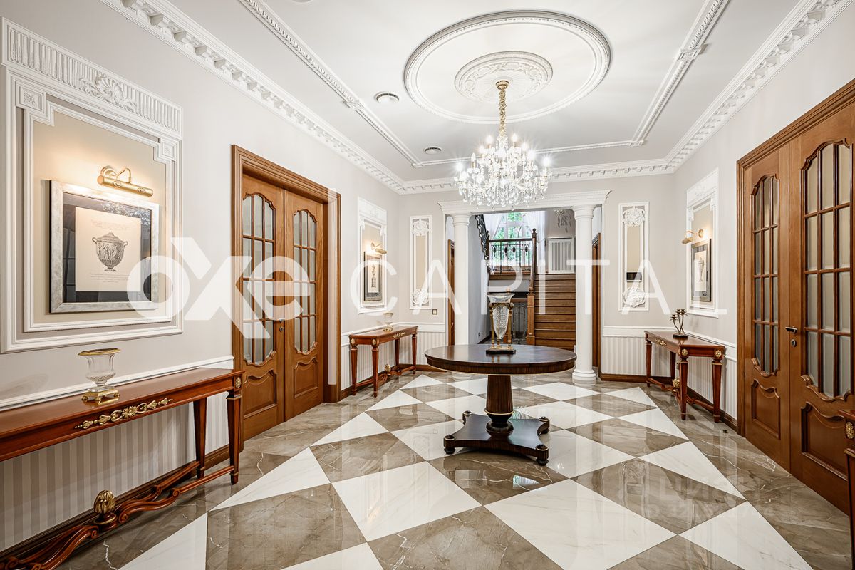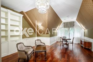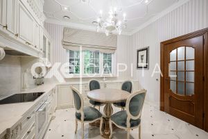 Площадь дома составляет 687 кв.м. 4 спальни, кабинет, столовая с выходом на террасу, гостиная со вторым светом и выходом на террасу, бильярдная, бар, библиотека, малый кабинет, SPA-зона.