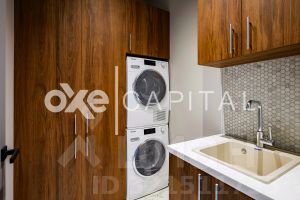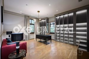 Планировка дома: холл, гостиная со вторым светом, столовая, гостевая спальня, гостевой санузел, бильярдная, кабинет, студия, СПА. Есть гараж в контуре дома на 2 м/места. Коммуникации центральные.