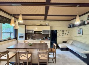 Тихое, старо-дачное место, соседствует с густым лесом и прудом. В поселке есть школа, библиотека и детские сады. Электрички проходят внизу в 700м, дом стоит на возвышенности их не слышно. От платформы Пионерская 8 мин. пешком, электрички до Москвы интервал 5-10 мин, отличное транспортное сообщение, можно доехать на автобусе и на маршрутке, в пешей доступности вся развитая инфраструктура. На автомобиле удобно добираться по можайскому шоссе, либо по платной дороге "северный объезд Одинцово" (съезд в десяти минутах на авто от дома).