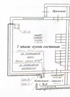 На первом этаже находятся гостиная, сан. узел, котельная с газовым котлом, тамбур и кладовка.