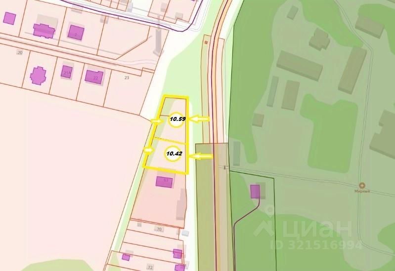 2 участка = 10.59 соток и 10.42 сотки (суммарно = 21.01 сотки).