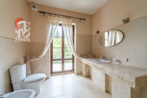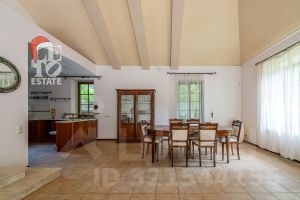 Во внутренней отделке использованы качественные дорогие материалы, ремонт выполнен в классическом стиле, дом продается полностью укомплектованным мебелью и техникой. Просторная гостиная с высоким потолком и дровяным камином, благодаря большим окнам, наполняется солнечным светом, а также имеет выход на террасу, где можно наслаждаться свежим воздухом. Также важно отметить наличие двух спален и кабинета на первом этаже дома.