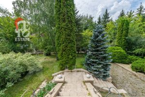 На участке правильной формы выполнен ландшафтный дизайн, вымощены дорожки, сделано освещение, растут плодовые деревья и кустарники, высажены голубые ели и туи. Перед домом организована площадка для стоянки трех автомобилей, а также напротив ворот участка имеется гостевая парковка на три авто.