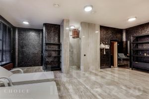1 этаж: гараж, прихожая, санузел, сауна, комната отдыха, тренажерный зал, холодильная комната, котельная, гардеробная, спальня с санузлом, постирочная