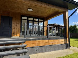 Две террасы с фасадным освещением, установлена скрытая лестница на чердак.