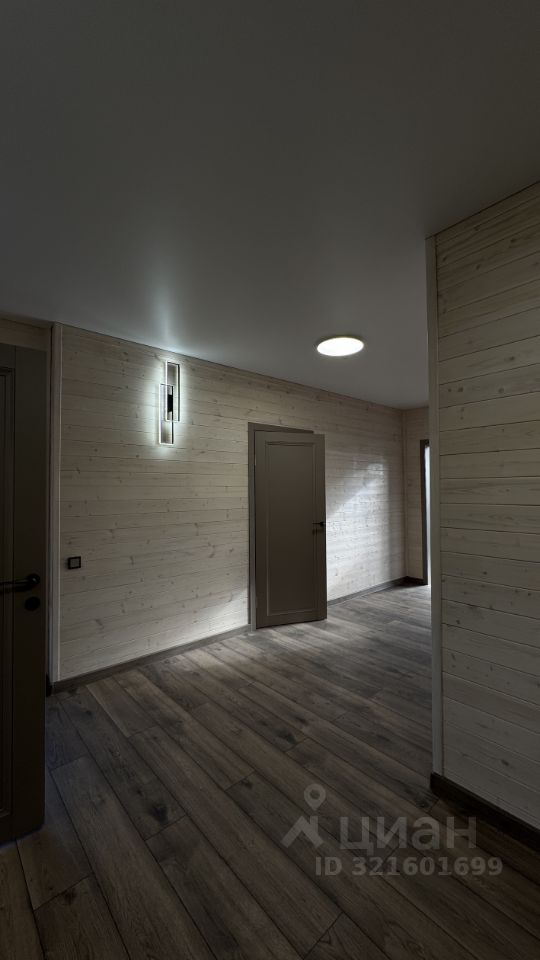 В прихожей, сан.узле и бойлерной- керамогранит на полу; спальни, коридор, кухня-гостиная- ламинат. Натяжной потолок с теневым профилем.