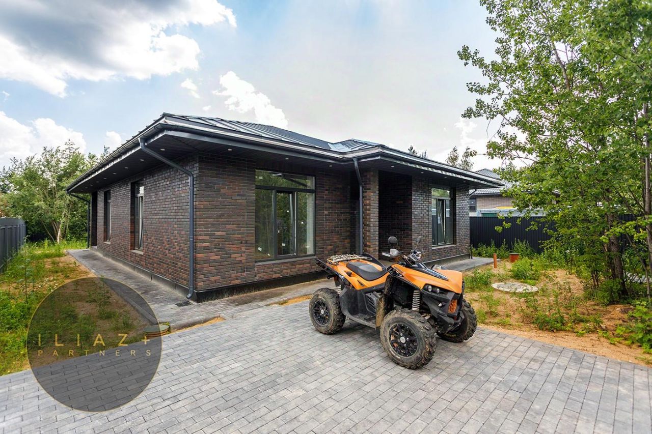 Вашему вниманию представляем одноэтажный кирпичный дом на монолитном фундаменте в стиле Райта. Внутренняя отделка white box, стены оштукатурены, сделана стяжка пола, полностью сделана котельная из дорогих материалов с резервным электрокотлом, сделана разводка воды, отопления, теплых полов , электрики по всему дому. На улице выполнена отмостка , дорожки, машиноместо со снеготаянием от газового котла. Высота потолков 3.40, высота дверных проемов 2.40, окна панорамные 2.50. В доме просторная терасса с возможностью утепления. Стены - теплый керамоблок + облицовочный кирпич, перегородки- кирпич. Крыша фальцевая. Выполнено полностью внешнее освещение дома, дренаж участка, забор по периметру, откатные ворота. На участке хвойные и лиственные деревья. Участок выровнен, отсыпан песком. Поселку около 25 лет, очень много людей живут постоянно, есть прописка, практически все жители построились, хорошая охрана, рядом в 200 метрах прямо внутри поселка продуктовый супермаркет и приличное кафе. В посёлке есть действующий Храм, пекарня, теннисный корт теплый, футбольное поле, детские площадки и многое другое. Рядом , прямо напротив въезда находится Вкусвилл, Пятерочка , и другая инфраструктура. Очень хорошая транспортная доступность- есть платная дорога, в любое время до Москва Сити можно добраться за полчаса. Есть дома с 3 и 4 спальнями. Таких домов есть 4 штуки рядом.Один из домов находится в стадии внутренней отделки.