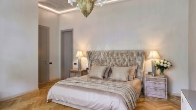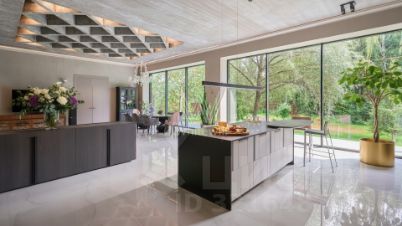 Планировка включает уютную гостиную-кухню-столовую, зону отдыха с камином и выходом на террасу, 4 спальни, вместительные гардеробные и квартиру для персонала. Оставить машины можно во встроенном трёхместном гараже. На участке вдохните запах свежескошенной травы, прогуливаясь по освещённым дорожкам в тени высоких деревьев, и любуйтесь декоративными кустарниками.