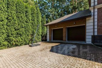 Дом оснащён гаражом на два машино-места. Участок вокруг дома благоустроен: выполнен ландшафтный дизайн, включающий газон, дорожки и дренаж. Также на территории участка расположена крытая беседка для барбекю с камином.