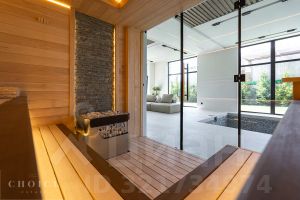 1 этаж: прихожая, гардеробная, холл, кухня, столовая, гостиная, санузел - 2шт., бассейн, сауна, терраса, спальня с гардеробной и санузлом, котельная, постирочная, рабочая кухня, гараж - 2шт.