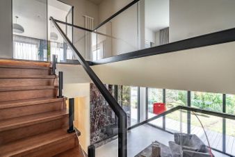 - Изюминкой дома являются раздвижные оконные порталы в гостиной и на кухне, а также стеклянные эркеры (Oriel) в гостевых спальнях.