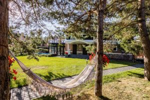 Предлагается к продаже полностью готовый к проживанию дом в охраняемом поселке. На участке расположено два строения: основной дом и гостевой. К основному дому пристроена крытая терраса с дровяным камином и гриль зоной. Так же на участке, окруженном соснами, располагается открытый бассейн, детская площадка и дровяная зона барбекю. По участку разведена подсветка и автополив. Возможно увеличение участка.