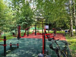 В пешей доступности, детские и спортивные площадки, футбольное поле.