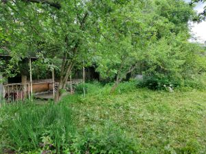 Последнее время очень мало использовался, но на участке много плодоносящих ягодных кустарников, яблонь, винограда, а также кустов пионов и других цветов.