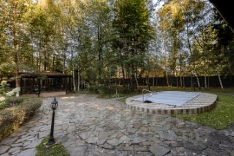 Участок 21,84 соток, лесной, ровный, преимущество расположения на данном участке в том, что у дома только 1 сосед, выполнен ландшафтный дизайн, предусмотрено уличное освещение, высажены растения, много деревьев, берёзы, яблони, елки, а также парковочная площадка под 2 машино-места, открытый бассейн , беседка. По периметру участок огорожен , установлены электрические ворота .
