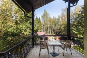 — Общая площадь дома 229,3 , дополнительно составляют открытые пристройки: большая терраса, патио, лоджии на этажах , баня, домик гостевой.
