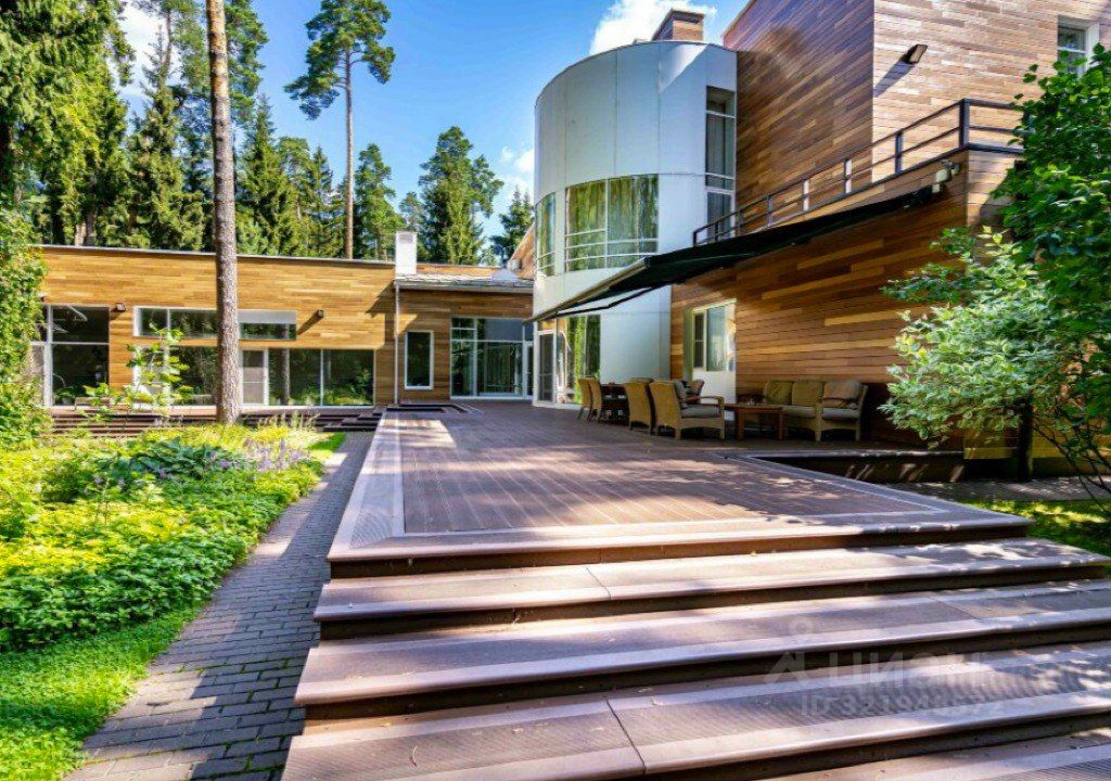 Продаётся современный особняк площадью 1040 м² на лесном участке 45 соток в престижном коттеджном посёлке Сосновый Бор на Николиной горе. Дом полностью готов к проживанию (под ключ), укомплектован мебелью и техникой.