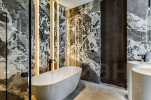 Особенности: высокие потолки (4,2 м и 3,1 м), атриум 7,5 м, панорамные окна из закаленного стекла, терраса с барбекю-зоной, лифт, озелененные террасы с автополивом.
