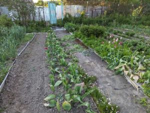 Много клубники, старые сливы, молодые яблони, смородина, крыжовник, малина. Огород не обрабатывался год.