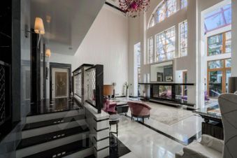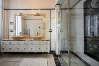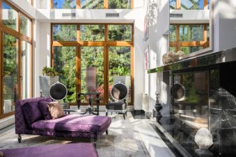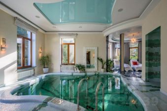 1-й этаж: холл, кухня-столовая, гостиная с камином и выходом на участок, 2 кабинета, бассейн, зона отдыха с санузлом и душевой, 2 гардеробные, гостевой санузел.