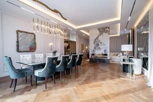 В доме только что выполнен современный дизайнерский ремонт из премиальных материалов, паркетная доска, итальянский керамогранит, обои Roberto Cavalli, бытовая техника Kuppersbusch, Liebherr и много всего интересного. Все новое, никто не жил.