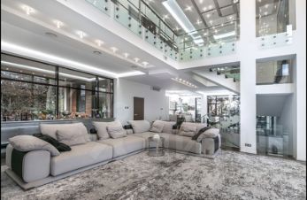 2 этаж:3 спальни с ванными(в каждой из них гардеробная),хозяйская спальня имеет зимний сад и отдельные террасы,из всех помещений выходы на круговой балкон