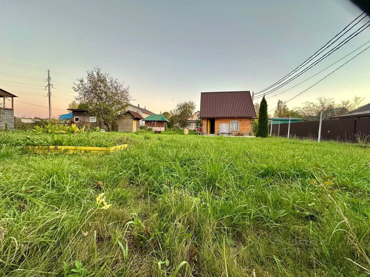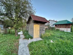 Участок квадратной-ровной формы, огороженный, на территории стоит небольшой домик 2-х этажный с баней, пригодный для проживании, а так уличный биотуалет;