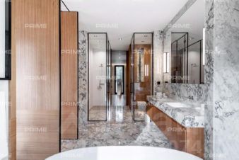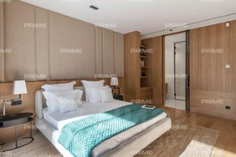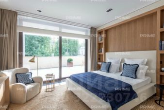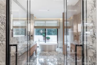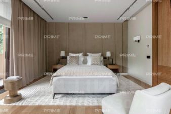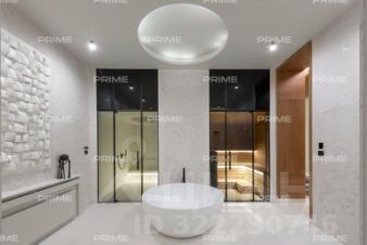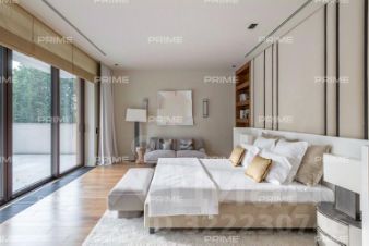 Третий этаж - это мастер-сьют площадью 110 м, созданный, как отдельный мир внутри дома. Просторная спальня с зоной отдыха наполнена светом, а панорамные окна и собственная терраса открывают живописный вид на сад. Две гардеробные, выполненные на заказ, позволяют организовать пространство без компромиссов. Просторная ванная комната выполнена с использованием великолепного мрамора AFYON VIOLET, сантехники GESSI и VILLEROY & BOCH. А ванна, расположенная у панорамного окна, позволяет наслаждаться видом окружающей природы. В спальне - торшер от JNL и бра от EICHHOLTZ, которые создают мягкий вечерний свет, идеально подходящий для чтения или отдыха.