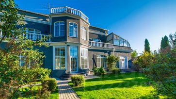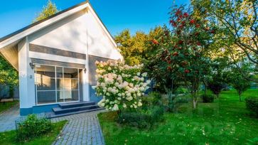 2. Гостевой дом (159,5 кв.м.): 1-й этаж: гостиная, кухня, гардеробная, санузел; 2-й этаж: 3 спальни, ванная комната, квартира для персонала с отдельным входом.