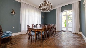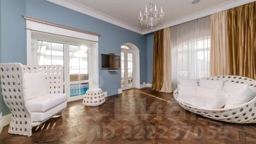 номер объекта: 011732. На продажу предлагается дом на Рублево-Успенском шоссе, в 15 км. от МКАД, в коттеджном поселке Лызлово. Дом 4-х уровневый, кирпичный, площадью 778 м.кв., участок - 17 сот. (10 м/м). Готов к проживанию. В цоколе: тренажёрный зал, санузел, котельная, зона отдыха, винная комната, душевые, санузел, хамам, массажная комната, салон красоты, косметологический кабинет, санузел, гардеробная, постирочная. На первом этаже: холл, гостевой санузел, обеденный зал, кухня+комната для персонала с санузлом, гостиная с камином. отдельный вход в комнату охраны. На втором этаже: холл с выходом на балкон, гостевая спальня с санузлом, гардеробная, бассейн с современной очисткой воды (без хлора) и комнатой отдыха, санузел, хозяйская спальня с гардеробной, ванной комнатой, выходом на балкон и кабинетом. В мансарде: детская спальня с выходом на террасу, душевой и гардеробной, cпальня с душевой, спальня с душевой