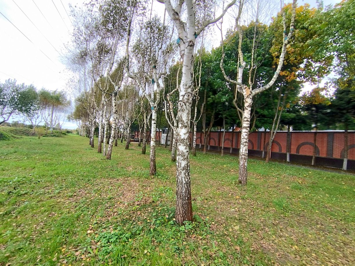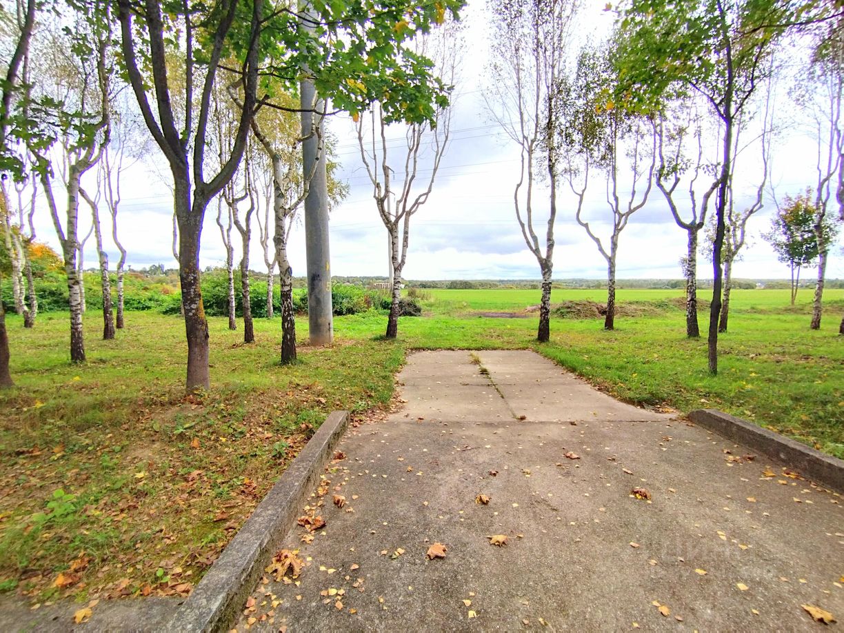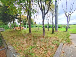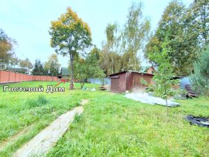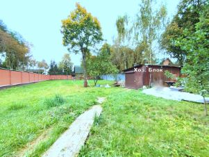 Огорожен высоким кирпичным забором на капитальном фундаменте.