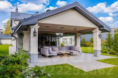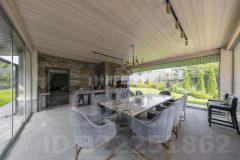 Уютная зона для барбекю с полным оснащением: казан и тандыр. Дом выгодно расположен вблизи Москвы и отличается стильным дизайном, обеспечивая комфортное уединение от городской суеты.