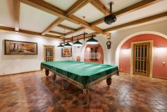 Цокольный этаж: холл, бильярдная и кинозал, с/у, 2 большие гардеробные для хранения сезонной одежды, холодильник для шуб, кладовая, постирочная, кладовая, винная комната, технические помещения.